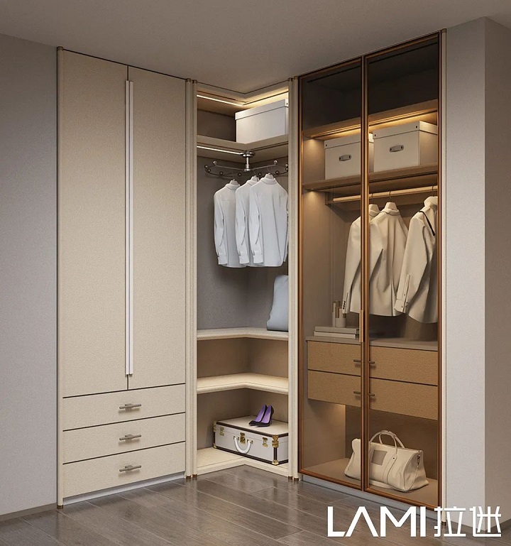 柜體安裝自動(dòng)開(kāi)合阻尼器,45°切角,開(kāi)合自帶緩沖,靜音無(wú)聲更安全。